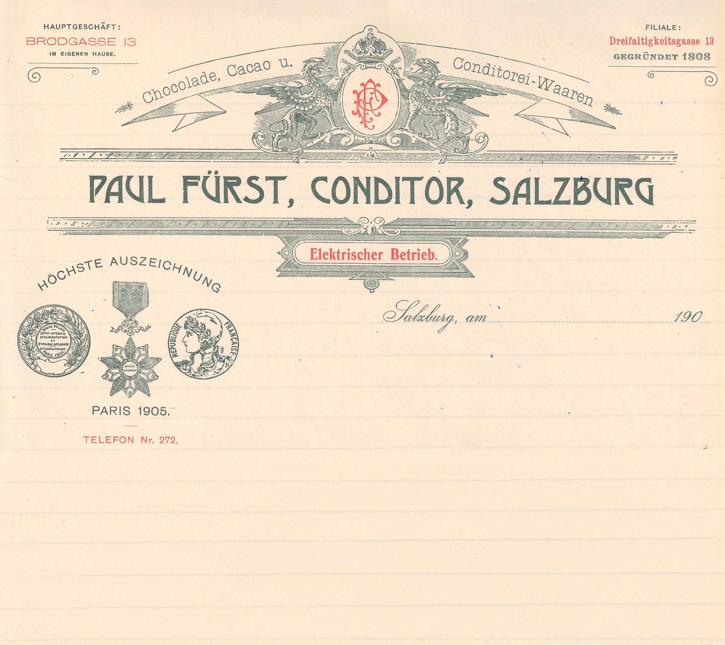 Um das Jahr 1890 erfand der Salzburger Konditor PAUL FÜRST die heute weltbekannte Salzburger Mozartkugel. Seine feine Kreation aus Pistazienmarzipan und Nougat, umhüllt von dunkler Kuvertüre wurde rasch zur berühmtesten Praline der Stadt.