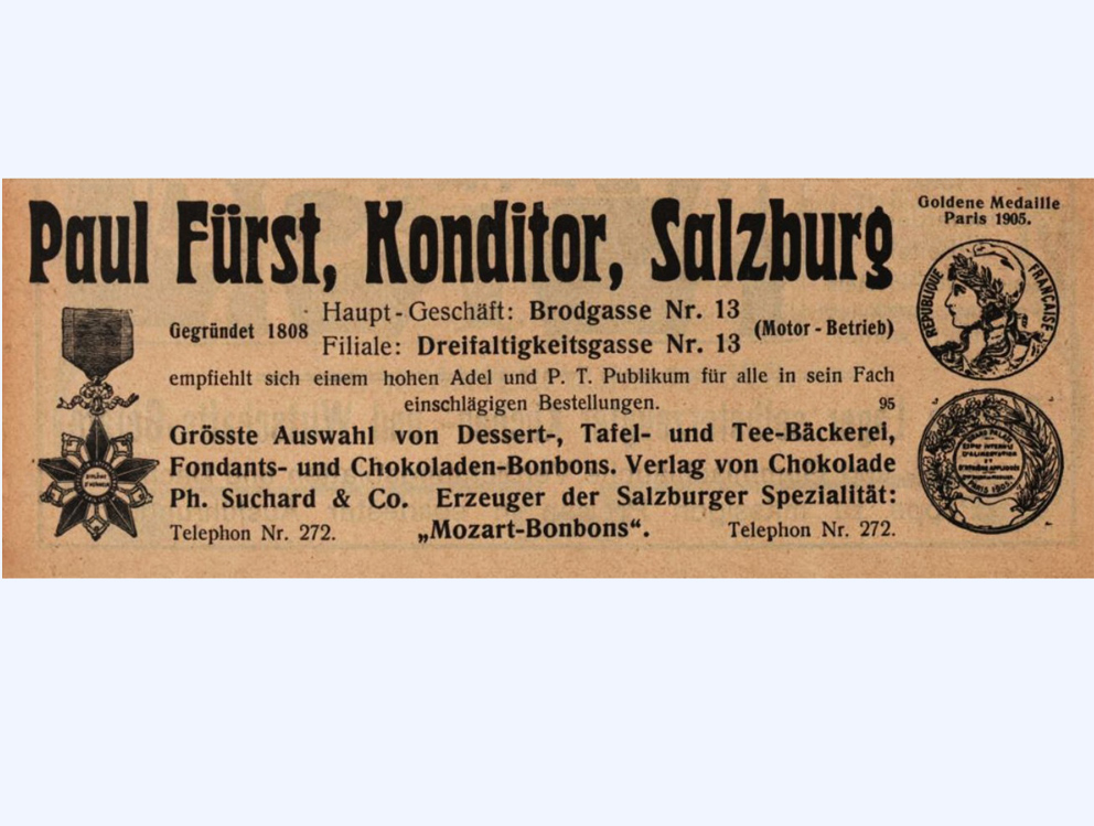 Gustav Fürst, son of PAUL FÜRST, advertised his Mozartkugeln under the name “ORIGINAL SALZBURGER MOZARTKUGEL”.